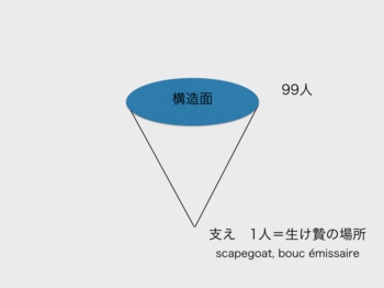 私の命名にかかる「第三項排除」の社会的論理は、人類学の用語を借りて言えば、ブク・エミッセール(またはスケープゴート効果)とも言い換えられる(今村仁司「第三項排除効果『排除の構造』)