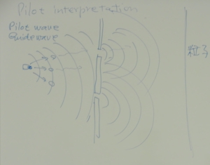 フロイトの考え方の根底にあるのは、領野とか領域とか、相互に関係を及ぼし合う擬人化された一つの主体的なもの、あるいは対象的なものなのですけれども、量子力学が登場すると、そういうものの考え方自体が一気に打ち砕かれてしまいます。どういうことでしょうか。たとえば、量子力学をちょっと勉強したことのある方ならきっと読んだことのある「ダブル・スリットによる思考実験」があります。